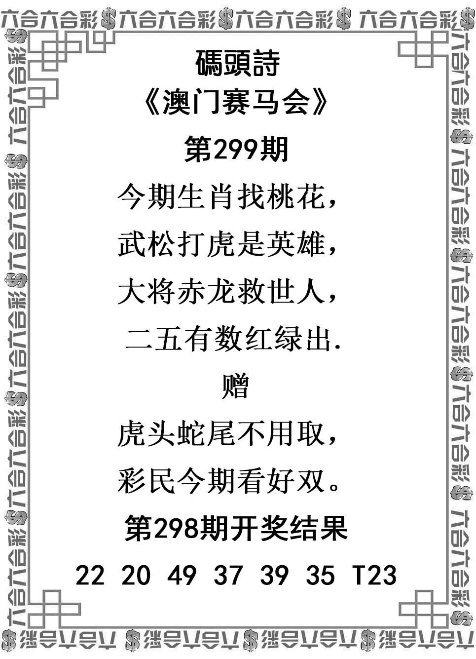 | 296期:主【兔龙蛇】开:猴22准 |